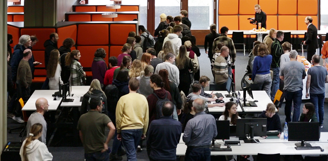 Die Gruppenarbeitszone entspräche aufgrund ihrer modernen Ausstattung, der einladenden Gestaltung sowie der strategischen Lage direkt im Foyer der Zentralbibliothek den aktuellen Bedürfnissen der UB-Nutzer:innen, allen voran der Studierenden, die die Bibliothek immer stärker als „Dritten Ort“ nutzten, so Dr. Schmidt. Seit vielen Jahren fungiere die Bibliothek als „sozialer Raum sowie als ein Ort, der die Gemeinschaft fördert, den freien Austausch von Ideen unterstützt und eine inspirierende Umgebung für das Lernen darstellt“. Zu wünschen sei, dass die Eröffnung der Gruppenarbeitszone einen ersten Schritt markiere, um diese neue Qualität nun auch in alle anderen Bereiche der Bibliothek einzuführen.